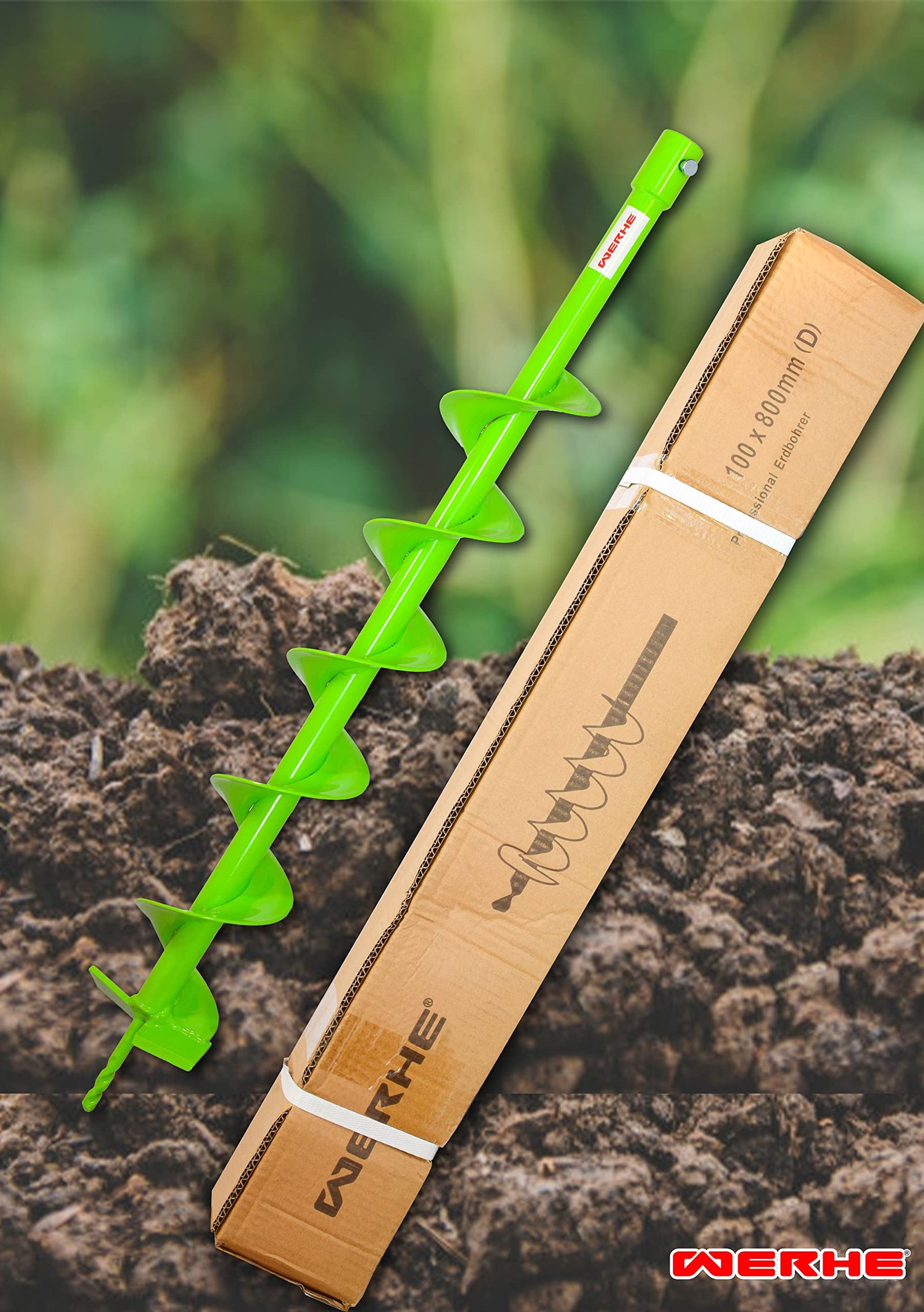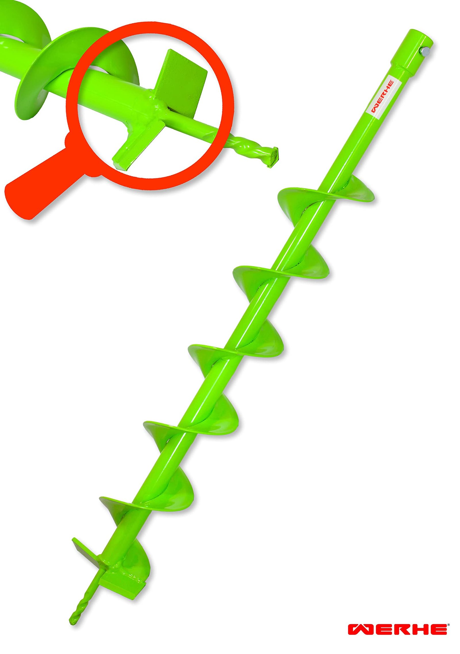 WERHE® Profi Bohrer VollStahl, Erdbohrer für bohrmaschine 100 mm extrem robust mit SDS Plus Adapter – Pfahlbohrer Brunnenbohrer präzise Bohrspitze.