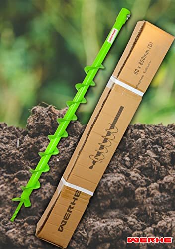 WERHE® Profi Bohrer VollStahl, Erdbohrer für bohrmaschine 60 mm extrem robust mit SDS Plus Adapter – Pfahlbohrer Brunnenbohrer präzise Bohrspitze.